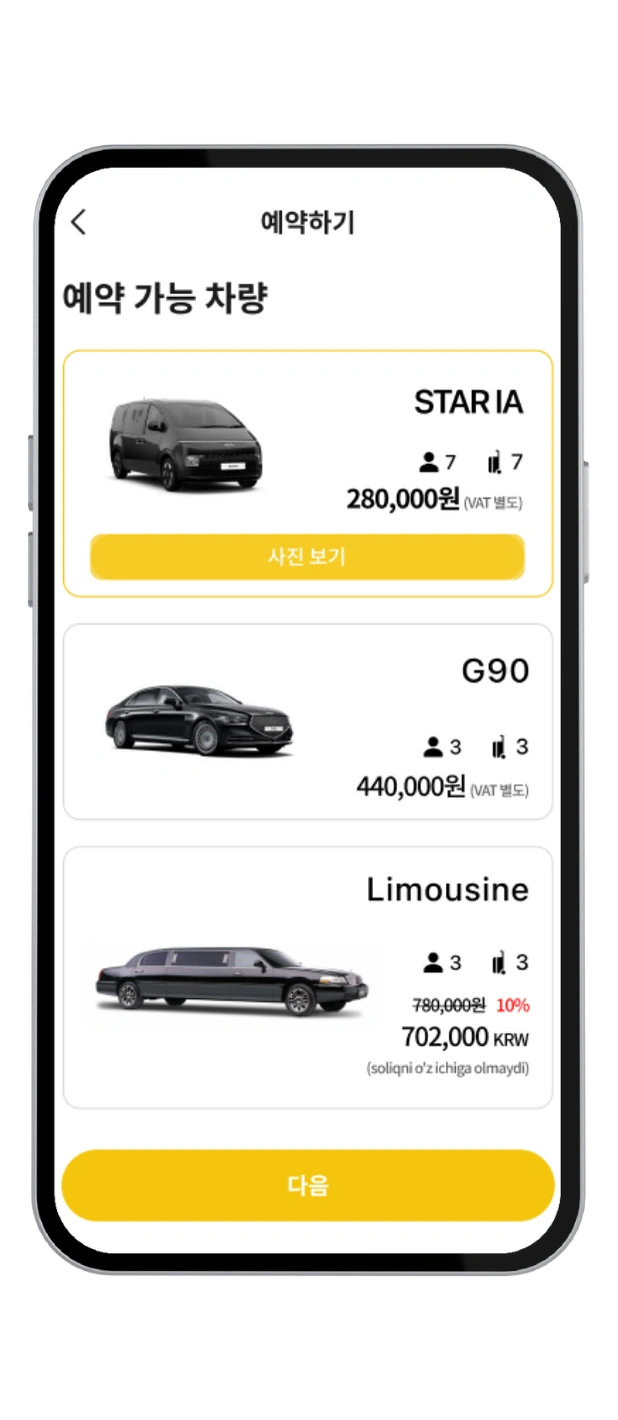 누구와 함께하든, 어디에서 오든 모두가 편안한 이동을 누릴 수 있도록 다양한 언어 환경에서도 이용에 불편함이 없도록 구성된 인터페이스로 설명 없이도 쉽게 사용할 수 있습니다. 국적이나 언어에 관계없이 같은 기준의 안내와 동일한 이동 경험을 제공합니다. 이동은, 누구에게나 공평해야 하니까요.가격까지 투명한 선택
