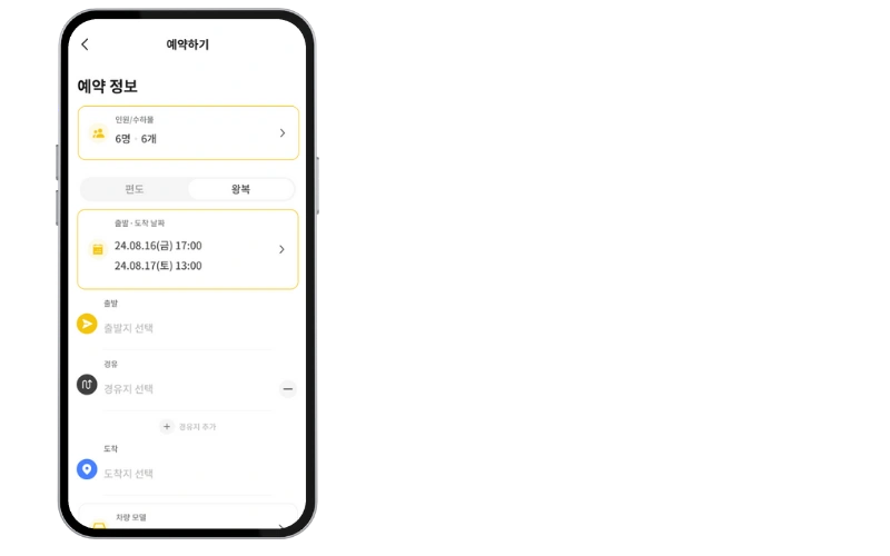 예상하지 못한 비용 없이 처음부터 끝까지 신뢰할 수 있는 여정 이동 전에 확인하는 명확한 요금 안내로 추가 요금이나 숨겨진 비용에 대한 걱정을 줄였습니다. 출발부터 도착까지 요금의 흐름을 이해할 수 있어 마지막 순간까지 안심하고 이동할 수 있습니다. 신뢰는, 가격에서부터 시작됩니다.표준 예약 시스템