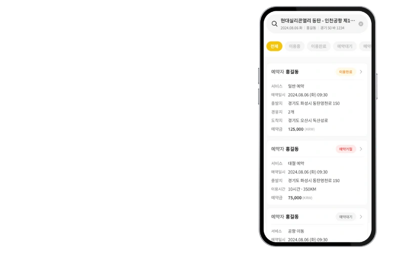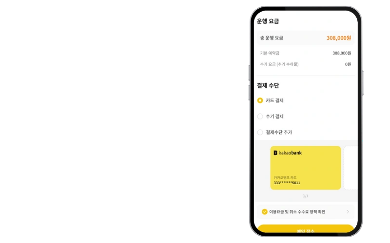 예상하지 못한 비용 없이 처음부터 끝까지 신뢰할 수 있는 여정 이동 전에 확인하는 명확한 요금 안내로 추가 요금이나 숨겨진 비용에 대한 걱정을 줄였습니다. 출발부터 도착까지 요금의 흐름을 이해할 수 있어 마지막 순간까지 안심하고 이동할 수 있습니다. 신뢰는, 가격에서부터 시작됩니다.표준 예약 시스템
